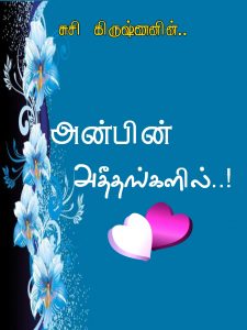 “என்ன கவிம்மா இப்படி பேசுற? நீ என் ஒரே பொண்ணுடா.! உனக்காக நான் இதைக் கூடச் செய்ய மாட்டேனா? உன் சந்தோஷம் தானே என் சந்தோஷமும். கல்யாணப் பொண்ணு, எதையுமே யோசிக்காமல் சந்தோஷமா இருடா கண்ணு!” அவர் சொன்னதில் முழு நம்பிக்கை இல்லாவிட்டாலும் கூட, அவர் பேசிய விதம் அவளை நம்ப வைத்தது.