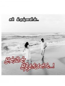 “உங்க மாப்பிள்ளைக்குப் பிடிச்சதே எடுங்க! எனக்கு ஒண்ணும் பிரச்சனை இல்லை.!” எனச் சாதாரணமாய் சொல்லிவிட்டு, அமைதியாய் அமர்ந்துக்கொண்டாள். அவளுக்கு என்னவோ, இதிலெல்லாம் விருப்பமே செல்லவில்லை. திருமணமே வேண்டாம் என நினைக்கையில், சேலை ஒன்று தான் குறைச்சல்?!” எனத் தனக்குள் சொல்லிக் கொண்டாள்.