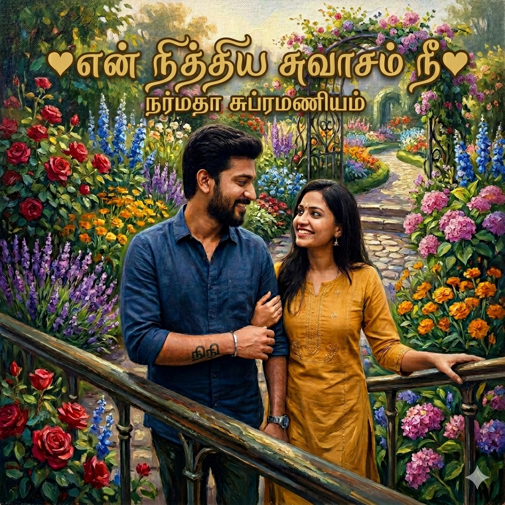 அவளது அறையிலிருந்து அந்தப் பூந்தோட்டத்தை நோக்கி ஓடி வந்த நிவாசினிக்கு அங்கு நின்றிருந்தவனின் முதுகே காட்சியளிக்க, ஓடி வந்ததால் உண்டான படபடப்புடன் அவனை நெருங்கினாள்.