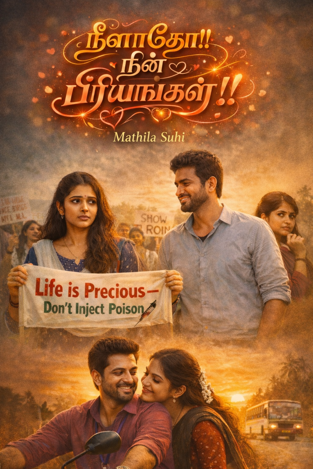 பைக்கின் கண்ணாடியில் பிரதிபலித்த வஞ்சியின் முகத்தைப் பார்த்த அந்தக் கணம் வார்த்தைகளின்றிக் காதலால் நிரம்பியது அந்த அழகிய தருணம்.